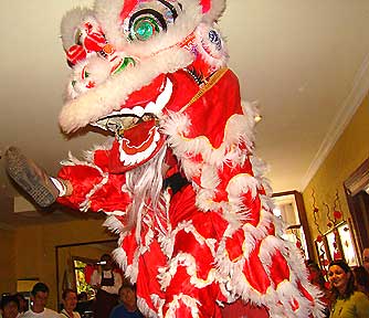 Aunque muchos los confunden con dragones, en realidad es la Danza de los Leones la que se utiliza en la celebración del Año Nuevo Chino. A diferencia de los dragones, estos son más cortos con dos personas muy ágiles que comparten el traje. |