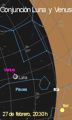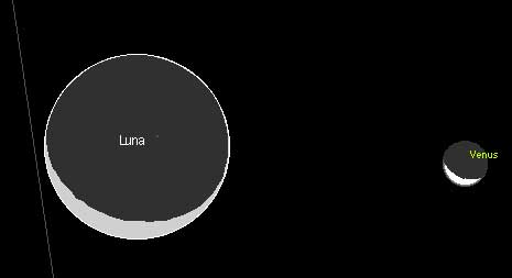 Hoy habrá una conjunción de la Luna y Venus, muy fácil de disfrutar al atardecer, después del ocaso solar, mirando hacia el oeste. |