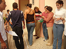 Foto del Festival de Matemática, 2008. Los participantes construyen un modelo a escala. |