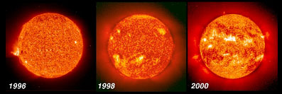 actividad solar de un mínimo a un máximo en el ciclo. SOHO, NASA.