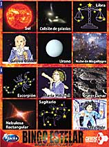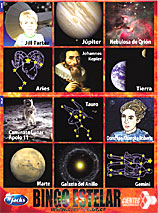 El Bingo está compuesto por cuatro cartones básicos y 48 postales con información adicional sobre cinco áreas de la astronomía:
