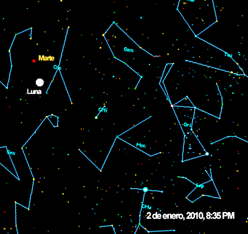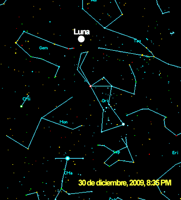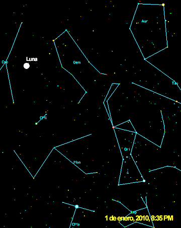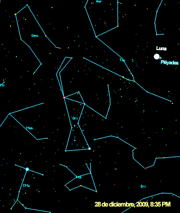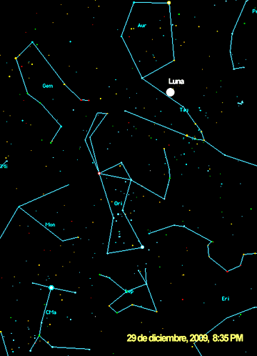 En estos últimos días de diciembre y los primeros del 2010, la Luna puede servir de puntero para ayudar a observar algunos objetos en el cielo nocturno con binoculares. Pruébelo, es bastante fácil y se sorprenderá de lo que puede ver con su instrumento y unos mapas.También puede observar la Luna directamente, aunque se encandilará.