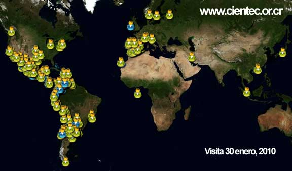 Aunque el período de vacaciones de diciembre y enero son más bajos en visitas al sitio web de CIENTEC, las estadísticas han subido nuevamente desde mediados de enero, con picos que sobrepasan los 20.000 diarios entre semana.Visita 30 de enero, 2010.