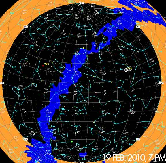 Planisferio para el 19 de febrero, 2010, a las 7 PM