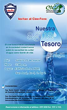 INVITAN AL CINE-FORO Nuestra agua, Tesoro frágil Jueves 25 de marzo, 2010, 3pm Edificio de la ANDE, San José Comentaristas: