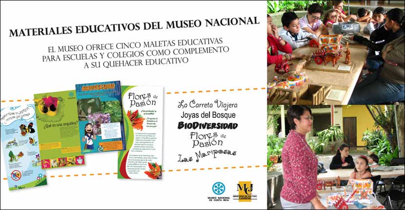 La biodiversidad, las mariposas, las orquídeas, las flores de pasión y el boyeo y la carreta, son los temas que presenta el Museo Nacional en cinco maletas educativas para préstamo a escuelas y colegios.Los docentes interesados en utilizar este material, como complemento en las clases, puede solicitarlo por varios días.