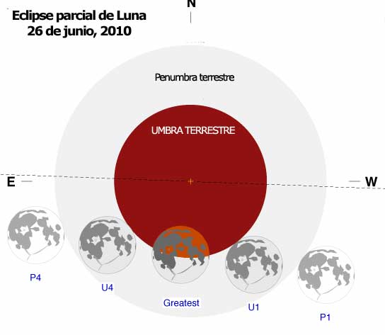 A pesar de que sólo la mitad de la Luna se interna en la sombra oscura de la Tierra, la umbra, la fase parcial durará dos horas y 2/3.Información traducida e imágenes tomadas de Fred Espenak, NASA.