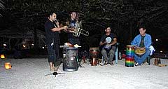 El cuarteto étnico inundó el ambiente de música desde antes de iniciarse el eclipse parcial. Bernal Monestel, Andrés Cervilla, Alvaro López y Sebastián hicieron vibrar los corazones de los participantes. Luego mostraron uno a uno los instrumentos étnicos que llevaban y algunos participantes hasta se animaron a probarlos. Las caracolas de diferentes tamaños, los tambores de diversas culturas. . .Un ceviche y una suculenta cena nos energizaron para seguir observando.