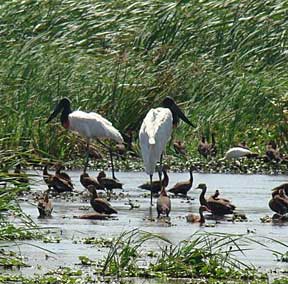 Jabirús y patos migratorios en el humedal de Palo Verde. Visite este humedal con CIENTEC a principios de marzo. |