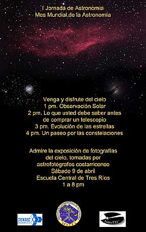Hoy sábado de 1 pm a 8 pm Escuela Central de Tres Ríos Venga y disfrute del cielo