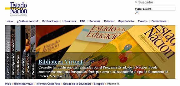 Los informes del Estado de la Educación buscan determinar cuánto se acerca o se aleja Costa Rica de la aspiración de ofrecer oportunidades para que la población tenga de manera equitativa, acceso a una educación de calidad que promueva el desarrollo de las capacidades de las personas para realizarse individualmente y contribuir al bienestar de la sociedad.Puede consultar las edicaciones hasta la fecha (2005, 2006, 2011). Un panorama general sobre la situación de la educación costarricense puede encontrarlo en el apartado de sinopsis o bien puede revisar los capítulos de cada informe.