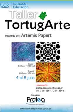 TortugArte es un entorno de programación que se focaliza en la creación de obras artísticas. Los temas presentados incluirán introducción a la programación y aspectos relacionados con el arte. No se necesita tener ningún experiencia previa en arte o en programación para asistir al taller. Lo que se necesita es curiosidad y entusiasmo para el aprendizaje y el deseo de probar algo que Ud nunca ha hecho antes. Sin embargo personas con conocimientos en arte y/o programación son bienvenidas también. Cada día habrá una charla y tiempo para que los participantes trabajen en sus propios proyectos. |