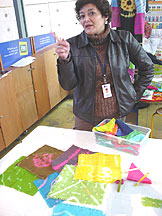 En otro espacio contiguo, Luz Marina nos enseñó el producto del taller *Teñido: El arte de las telas y los colores*.