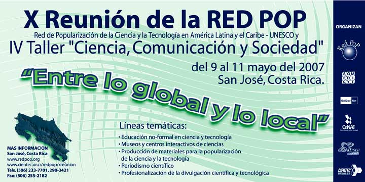o Profesionalización de la divulgación científica y tecnológicaRED POP, SciDevNet, SOMEDICYT, CENAT, MICIT, CIENTEC Más información: