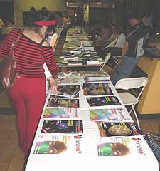 Se dispondrá de una mesa para la distribución de materiales gratuitos. Cualquier participante podrá colocar sus materiales en este sitio y estarán disponibles a todos los interesados. Para la venta de libros y otros materiales se dispondrá de un puesto, que tomará los materiales y se encargará de su venta durante el evento. Los interesados deberán incluir una comisión del 30% en el precio de sus artículos si los entregan aquí. El puesto los custodiará y devolverá los no vendidos, así como lo recaudado, al final del evento.