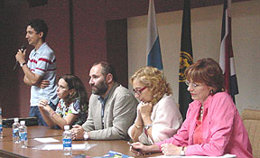 Elaine Reynoso de la Dirección General de Divulgación de la Ciencia de la Universidad Autónoma de México, presentó una introducción al tema de la reunión: Entre lo global y lo local. Linda Shore, directora del Instituto para Educadores del Exploratorium en San Fransisco. EE.UU., presentó: Informal science education and the use of cutting edge technology. Ildeu de Castro Moreira del Ministerio da Ciencia y Tecnología