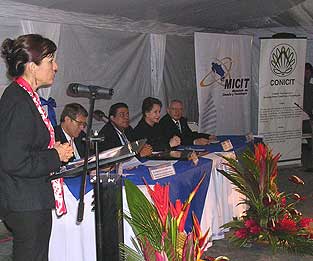 La mesa principal de la celebración incluyó a la Ministra de Ciencia y Tecnología, al presidente del CONICIT y a otras autoridades del ámbito. |
