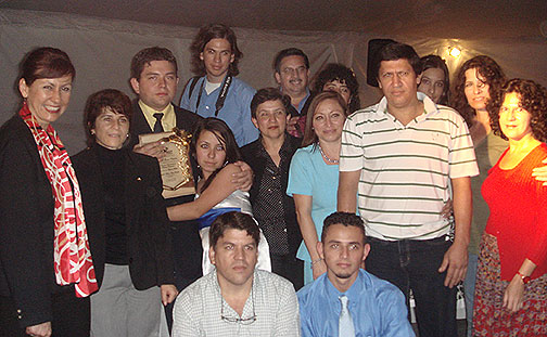 Varios organizadores, el galardonado y muchos miembros de su familia que lo acompañaron en la premiación.