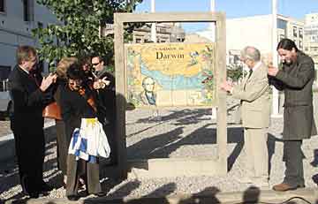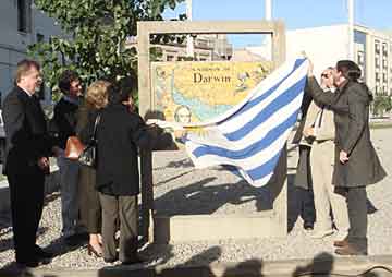 Em Montevidéu, a bela placa feita de azulejos está colocada em um local histórico do porto da cidade, diante de Las Bóvedas, Rambla. Ela foi inaugurada no dia 28 de maio com a presença da Ministra de Educação e Cultura daquele país, de várias outras autoridades e dos participantes da XI Reunião da Rede de Popularização da C&T na América Latina e Caribe (RedPOP). Em Maldonado, região na qual Darwin permaneceu por várias semanas em 1833, a placa foi inaugurada em 29 de maio, na região do antigo porto, ao lado do Centro de Informações do município. Duas outras placas serão colocadas em Colonia del Sacramento e Soriano. O projeto Caminos de Darwin no Uruguai está sendo coordenado pela Associación Civil CienciaViva. A colocação das placas tem o patrocínio da Petrobrás, das Intendências das cidades e da Agencia Nacional de Investigación e Innovación (ANII). O projeto tem também o apoio do Ministério da Ciência e Tecnologia do Brasil. Na cidade de Maldonado, há um restaurante (Evolution) construído no local da antiga pensão na qual Darwin residiu. Uma parede da residência original ainda existe e, ao lado dela, foi construída uma sala em homenagem a Darwin. Na localidade vizinha de Pan de Azucar, existe um monumento ao naturalista, construído pela comunidade local e colocado no lugar em que havia a estância de Sebastian Pimienta na qual Darwin se hospedou. No dia da inauguração da placa de Maldonado se encontraram ali, em clima de emoção, o tataraneto de Darwin e o tataraneto de Sebastian Pimienta (Juan Pimienta). A passagem de Darwin por este região foi muito produtiva, como ele mesmo revelou em seu diário: [os últimos dias] eu os empreguei para preparar e escrever as notas sobre todos meus tesouros de Maldonado. Várias de suas observações feitas no Uruguai, os materiais recolhidos e a coleção de pássaros ali reunida foram importantes no desenvolvimento posterior de suas idéias sobre a evolução. Neste ano em que se comemoram os 200 anos do nascimento de Charles Darwin e 150 anos da publicação de sua obra A Origem das Espécies, as atividades no Uruguai dão seqüência ao projeto Caminhos de Darwin iniciado com sucesso no Brasil, por ação do MCT, Casa da Ciência (UFRJ) e DRM/RJ. Cada placa está sendo colocada em lugares significativos, assinalados pelo próprio Darwin em seus escritos. Elas contêm o mapa do trajeto do naturalista na região e uma frase dele sobre a localidade específica da placa. Além de se criar um ponto de interesse educacional, cultural e turístico o projeto busca mobilizar a população local acerca da importância da história da ciência na região. Em cada cidade tem se buscado dar destaque ao envolvimento das escolas básicas, estimulando a participação de crianças e jovens em atividades sobre a evolução, a seleção natural, o meio ambiente local e a biodiversidade, bem como atrair professores, gestores públicos e população em geral. O projeto Caminhos de Darwin deverá se estender para outros países visitados pelo Beagle. Atividades similares já estão sendo programadas em Cabo Verde, África do Sul e Chile. As placas a serem colocadas e as atividades desenvolvidas em cada país guardam similitude com as realizadas no Brasil, de maneira a facilitar interações entre jovens destes países e propiciar futuros percursos científico-culturais no itinerário de Darwin na América do Sul e em outras partes do mundo. [Informe de Ildeu Moreira - DEPDI/SECIS/MCT] |