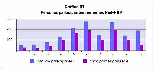 Siguiendo con la visión de mirar un poco la trayectoria de la Red a través de las reuniones, la estructura de éstas da una información complementaria. Efectivamente desde Río, 1990 hasta Santiago de Chile, 2001, la estructura del evento fue similar con algunas variaciones. Las reuniones mencionadas se caracterizaron por la dinámica de grupos de trabajo asociados a coloquios, talleres, o talleres de discusión o mesas redondas sobre temas relevantes. Allí se presentaban las ponencias y se proponían actividades. De los talleres y grupos de trabajo salían recomendaciones a la Asamblea General que eran parcial o totalmente acogidas en el Programa de Cooperación de la Red para el bienio siguiente. Las conferencias magistrales se hicieron comunes a partir de la 4ta. Reunión, así como las sesiones de carteles. En La Plata se inician las ferias abiertas al público que de esta forma se acerca al trabajo de la Red y a lo que se hace en divulgación y popularización de C&T. Esta feria no se programa en Brasil 2005 ya que ella está ligada al IV Congreso Mundial de Museos y Centros de C&T en donde hubo una gran feria abierta al público lo cual no era lo típico en los Congresos Mundiales, y fue debido a la influencia de la RedPOP. En San José de Costa Rica este evento no se programó.