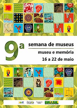 Promovida pelo Ibram, a Semana Nacional de Museus acontece anualmente, no Brasil, em celebração ao Dia Internacional dos Museus, 18 de maio. Neste ano, a 9ª Semana Nacional de Museus ocorrerá entre os dias 16 e 22 de maio, quando instituições museológicas de todo o país promoverão eventos em torno de um mesmo tema, Museu e Memória. |