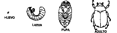 De los huevos, a los pocos días, sale una pequeña larva conocida como joboto, choboto o jogoto. Esta larva inmediatamente empieza a comer raíces de ciertas plantas y a crecer, para esto muda de piel al menos 2 veces.