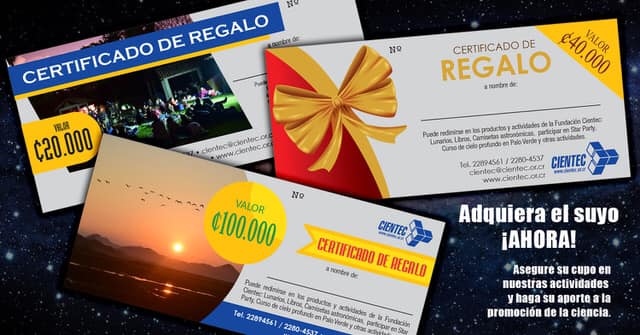 Los certificados se pueden canjear por productos y servicios, entre ellos, Star Party, Gira de cielo profundo en Palo Verde, camisetas y Lunarios, cursos de miniscopio y más.