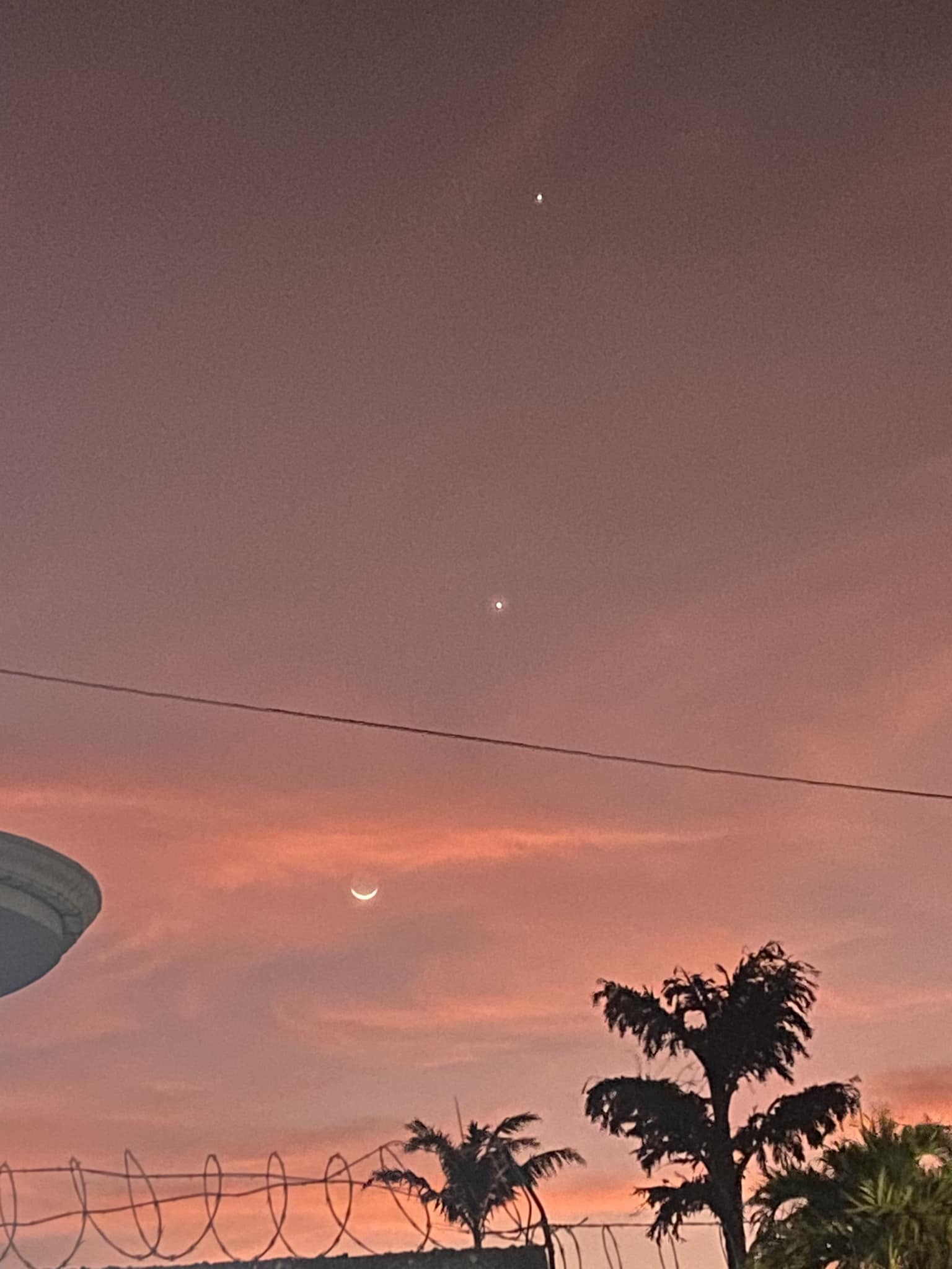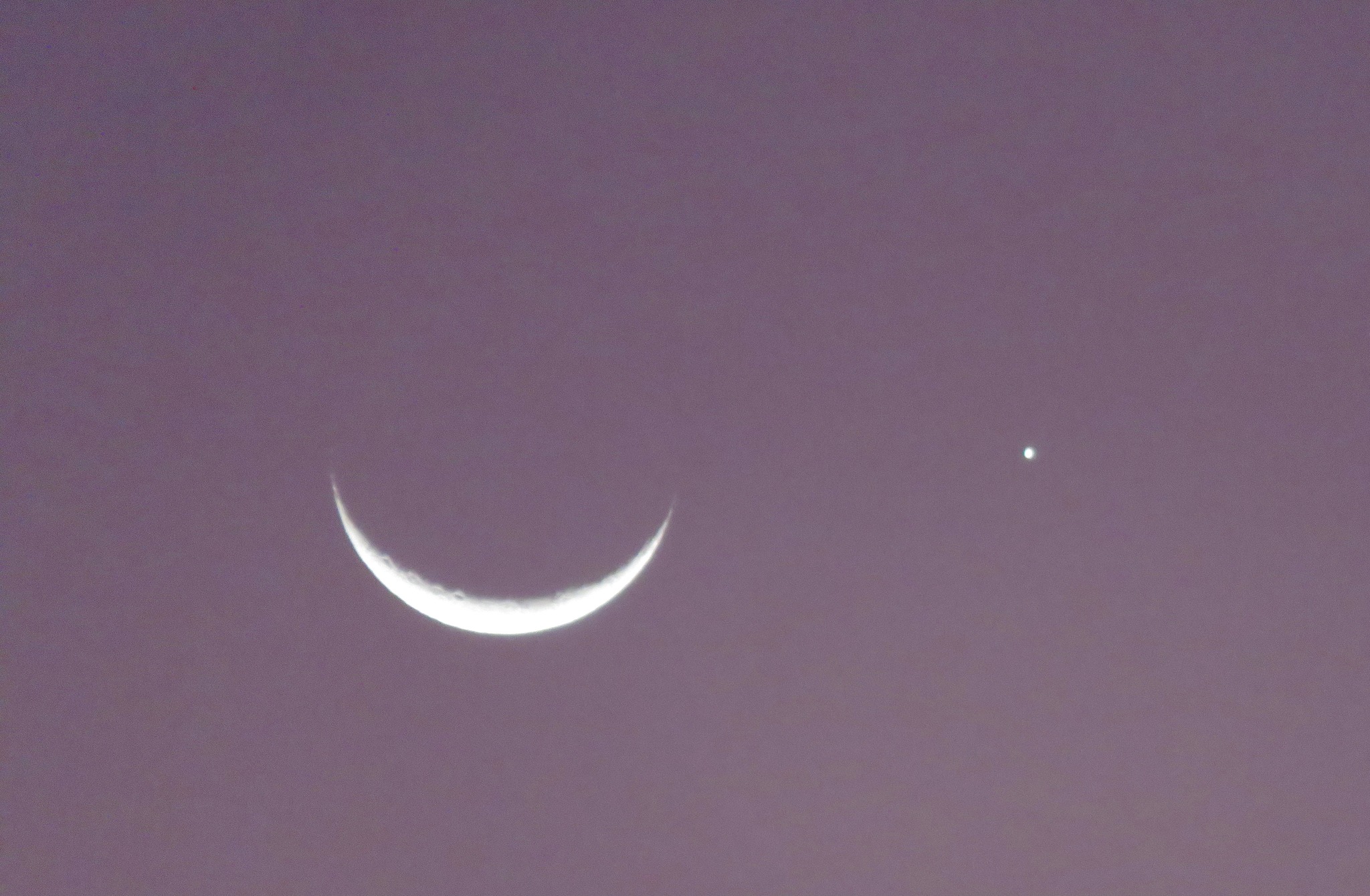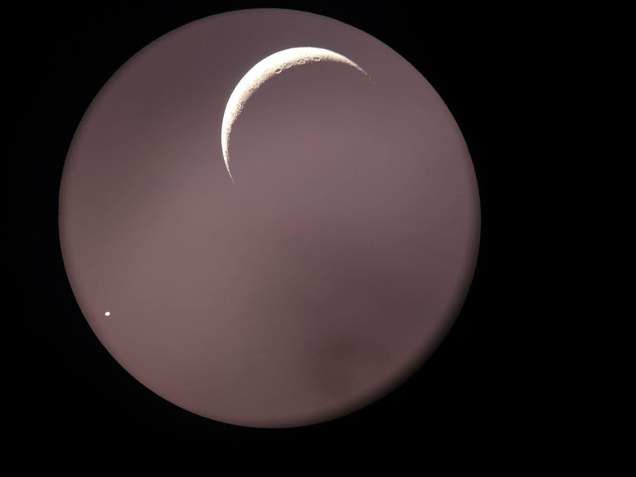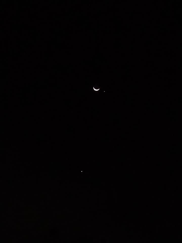 el cachito de Luna será un poquito más grande y estará en CONJUNCIÓN con Júpiter, con Venus bastante cerca al oeste.