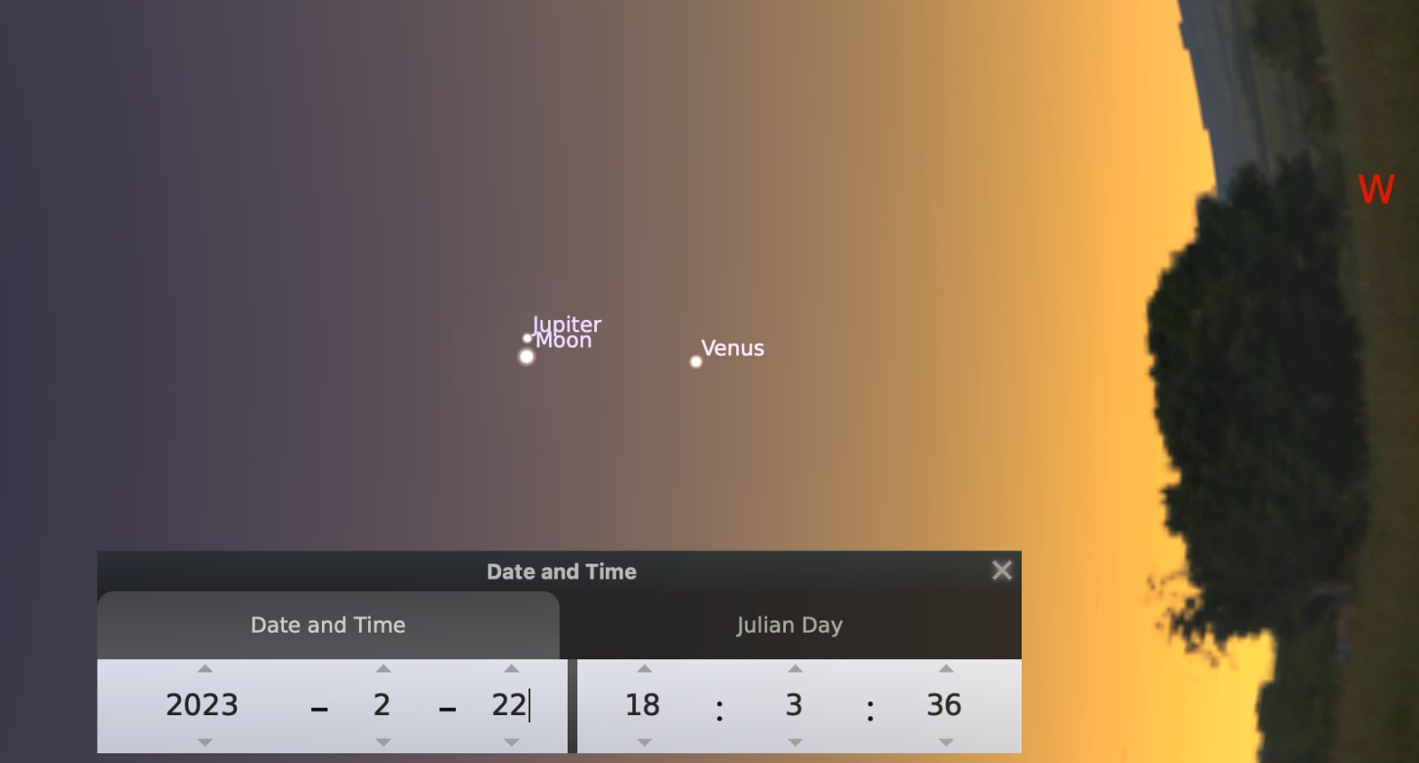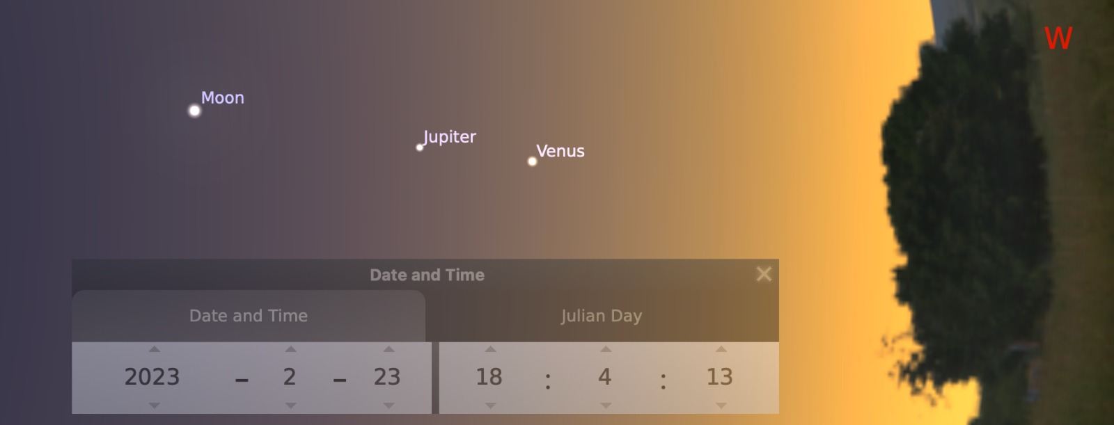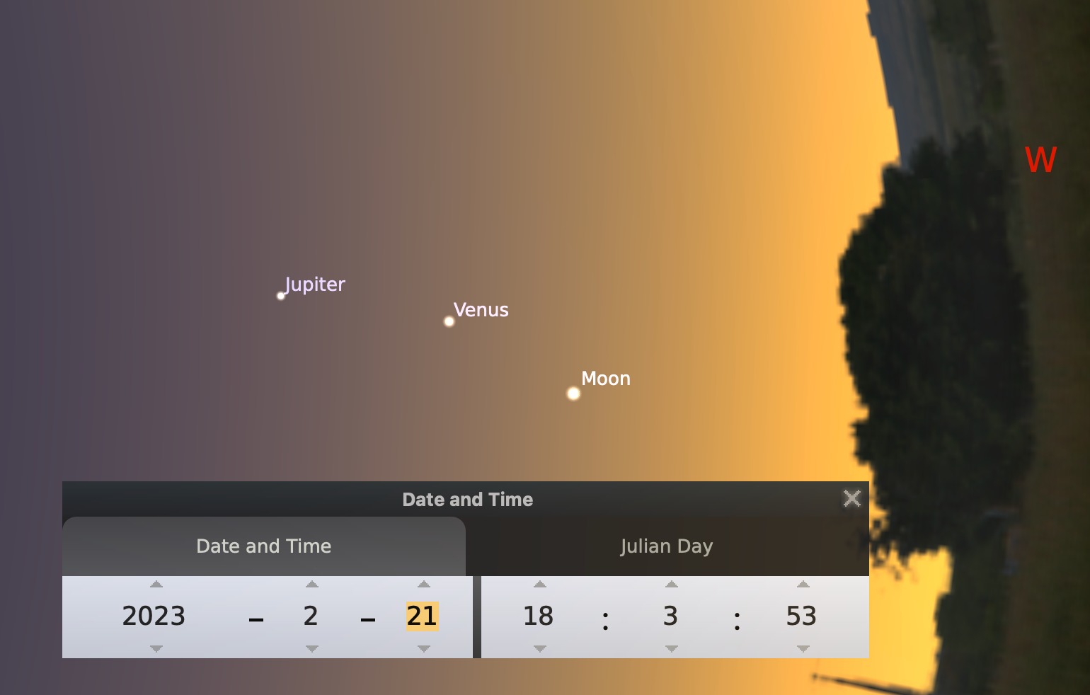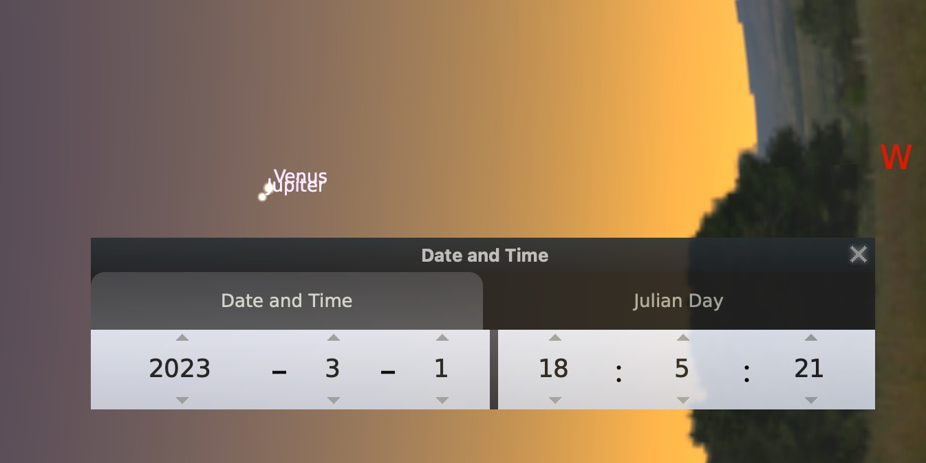 Los planetas por ser más brillantes que las estrellas, pueden divisarse en la luz del atardecer, después de que el Sol ha caído. Júpiter y Venus estarán al oeste yse irán acercando cada día, vistos desde la Tierra.