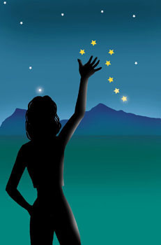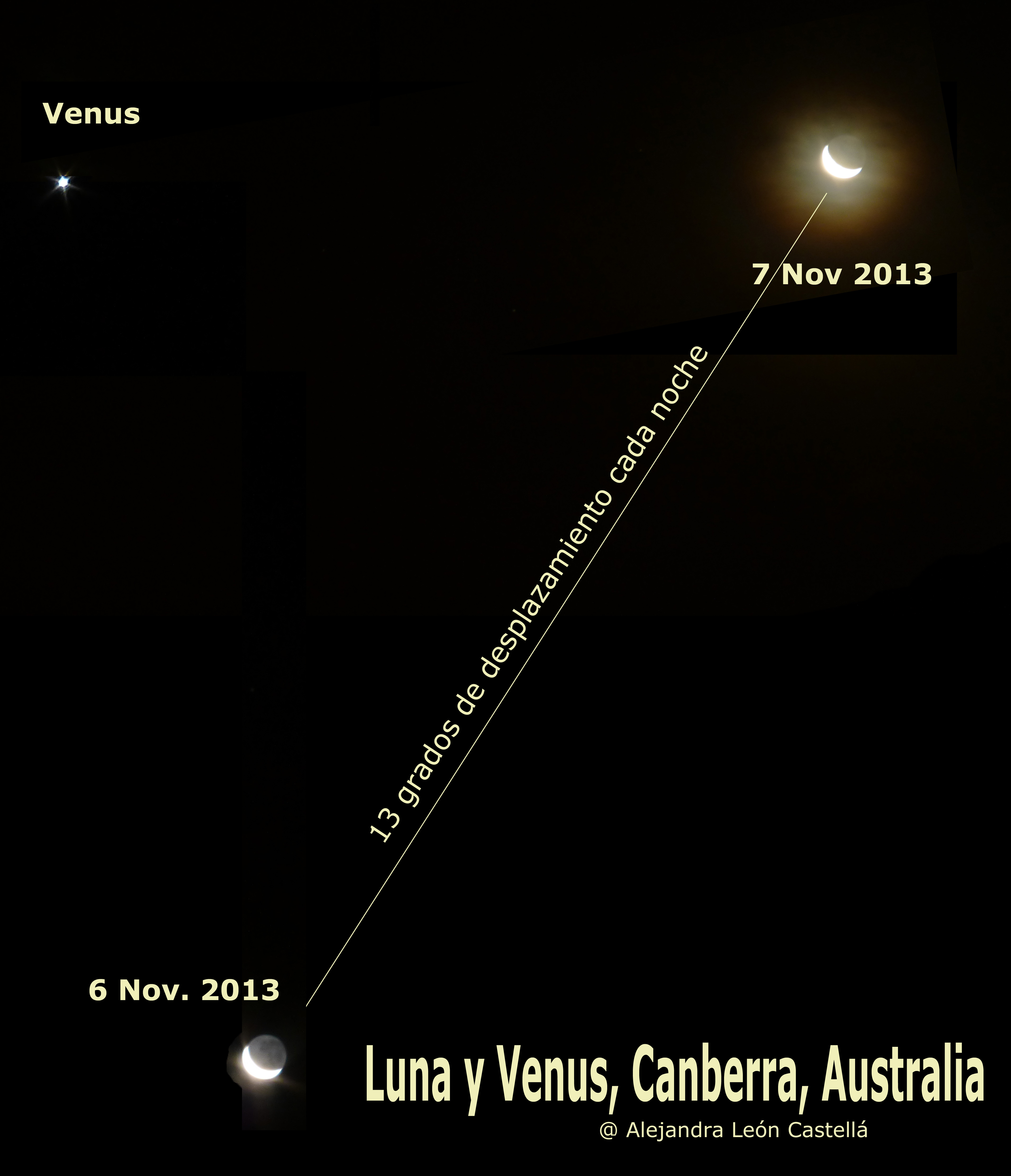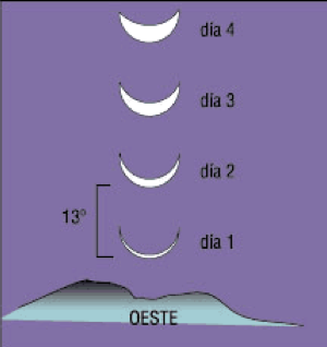 - Registre la posición de la Luna noche tras noche a la misma hora. Podrá seguir su desplazamiento diario hacia el este de aprox. 13 grados, una mano y tres dedos.