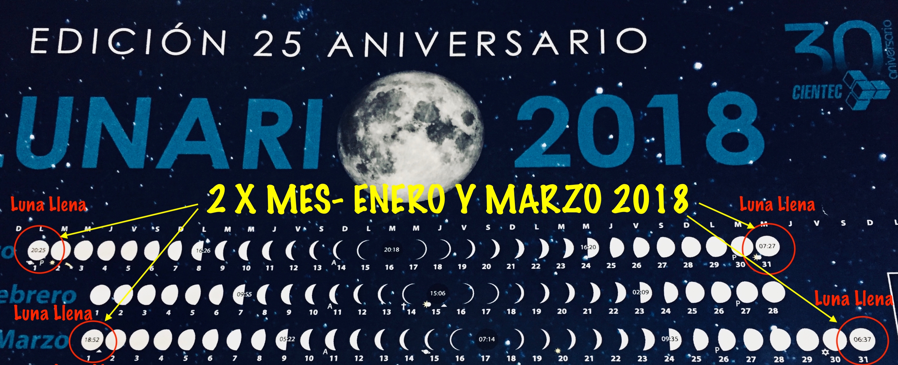 Imagen del Lunario 2018 de CIENTEC.