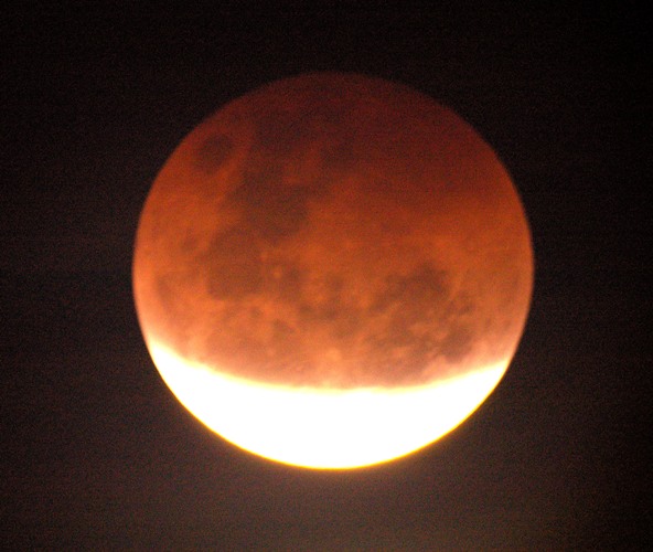 - Al estar en la sombra (umbra) de la Tierra, la luna no recibe la luz blanca.