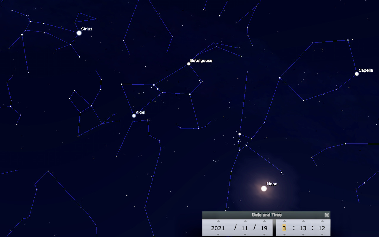 El Can Mayor, Orión, Tauro y Auriga serán las constelaciones vecinas a la posición del Eclipse Lunar del 19 de noviembre.