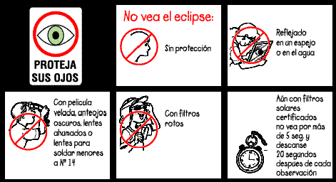 Aun con filtros solares certificados, se recomienda observar durante 5 segundos y descansar unos 20 segundos.