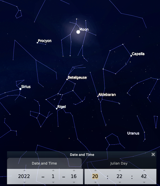 Este enero 2022 , tome la Luna como guía y podrá identificar planetas y constelaciones. Además, podrá seguir las fases de la Luna y el detalle de su topografía.