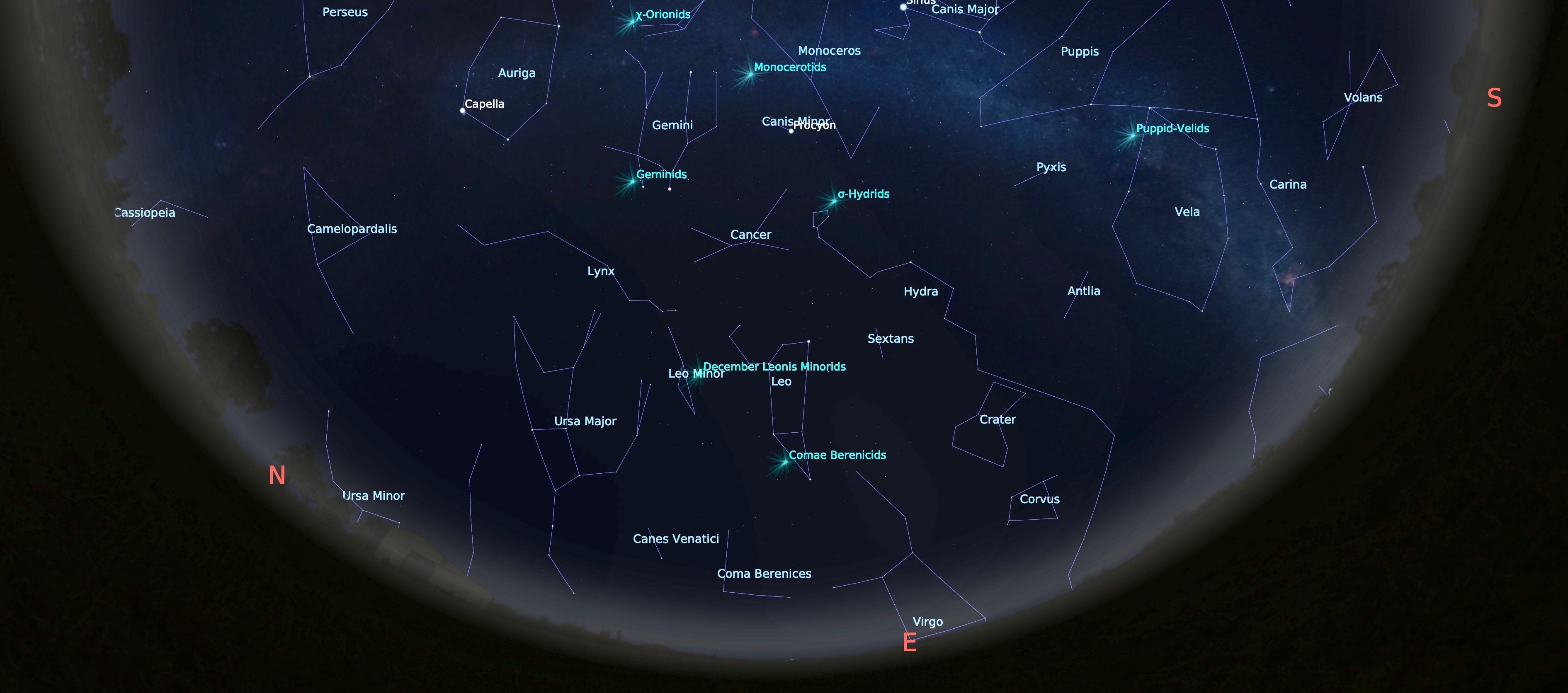 ¿Desde qué horas se puede ver? Esta es una de las lluvias mayores que presenta buena actividad antes de la media noche, porque la constelación de Gémini sale desde temprano y a partir de las 10 pm está bien ubicada (25 grados sobre el horizonte este). Entre más alta esté la radiante en Gémini más fácil será ver los meteoros.