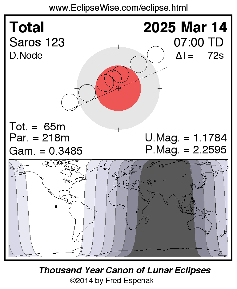 Este Eclipse lunar sucede aprox. 15 días previo al Eclipse Total de Sol del 8 de abril, 2024, y juntos suceden en una misma "estación de eclipses".