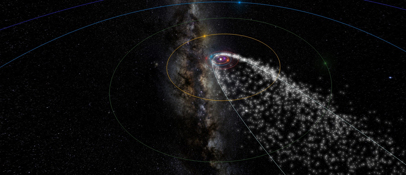 Curiosamente, esta no es la única lluvia de meteoros que produce el cometa Halley. A mediados de octubre la Tierra vuelve a encontrarse con un chorro de sus partículas y entonces la radiante está en Orión, por lo que se conocen como Oriónidas.