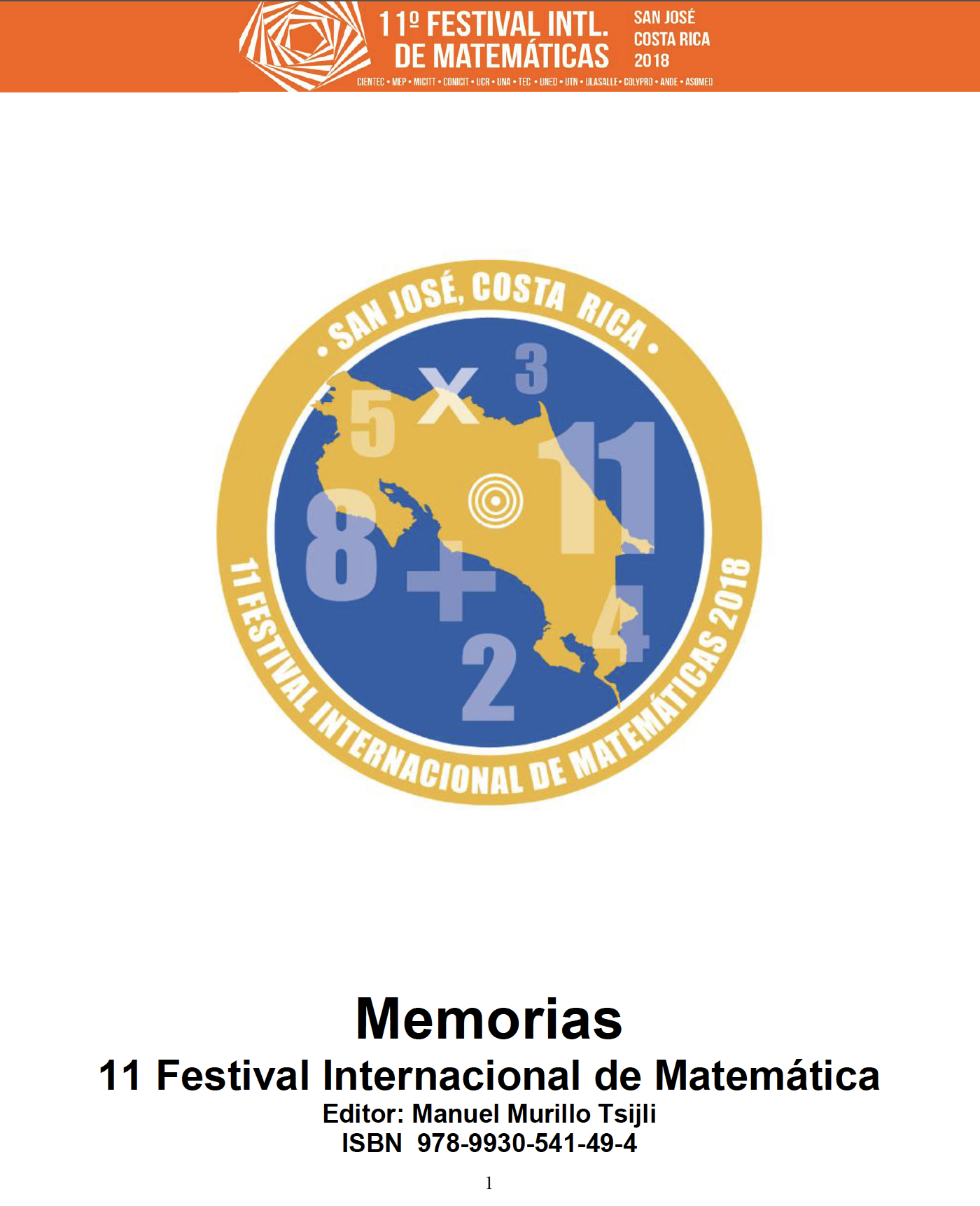 Presentamos las Memorias del 11° Festival Internacional de Matemáticas, realizado en la Universidad La Salle del 21 al 23 de junio, 2018. Este fue editado por Manuel Murillo Tsijli y está registrado ISBN 978- 9930- 541- 49-4.