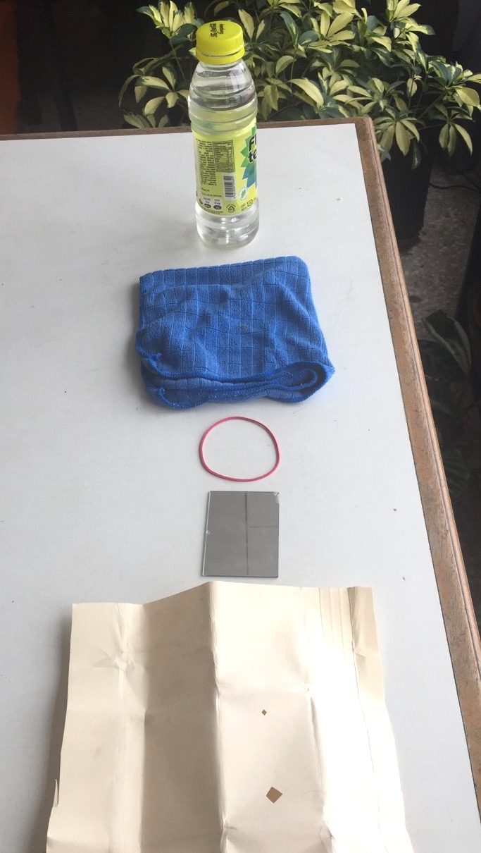 Una botella con agua- Un paño o piedras