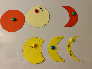 - Un modelo de la Luna o la Tierra con su órbita usando un aro y lana.