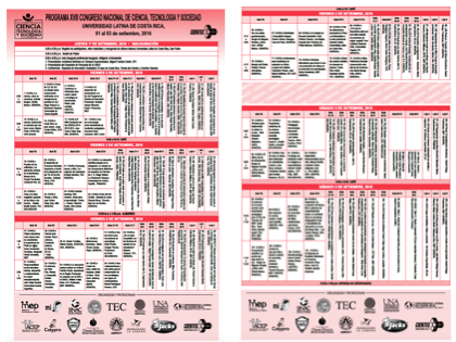 El programa del XVIII Congreso se distribuyó en tres días, como es tradición, para lograr las 20 horas de participación de los educadores. Se inició el jueves 01 de Set. con la inscripción, una pequeña sesión de pósters, varios talleres previos y la gira. Siguió la inauguración en la que participaron el Ministro de Ciencia, Tecnología y Telecomunicaciones, la Viceministra Académica de Educación y el Presidente de la Fundación CIENTEC.