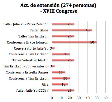 El XVIII Congreso logró alcanzar a 828 personas con todos los programas presenciales, entre los cuales se realizaron doce actividades de extensión en San Pedro, San José, Santa Ana y Cartago.