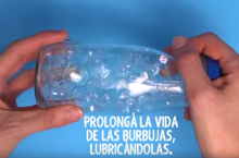Tape bien la botella, muévala con cuidado para lubricar las burbujas y ellas conservarán su forma largo tiempo.