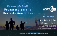 Ahora entramos a la recta final del año con una gran actividad de observación de la lluvia de Gemínidas en Jacó, además de los últimos cursos del año. Les invitamos a incluir estos regalitos vivenciales en sus listas.