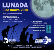 Para apoyar la observación de la llamada "Superluna", en su segundo perigeo más cercano del año, el Zoo Nacional Simón Bolívar y CIENTEC organizan una Lunada el 9 de marzo en la noche.