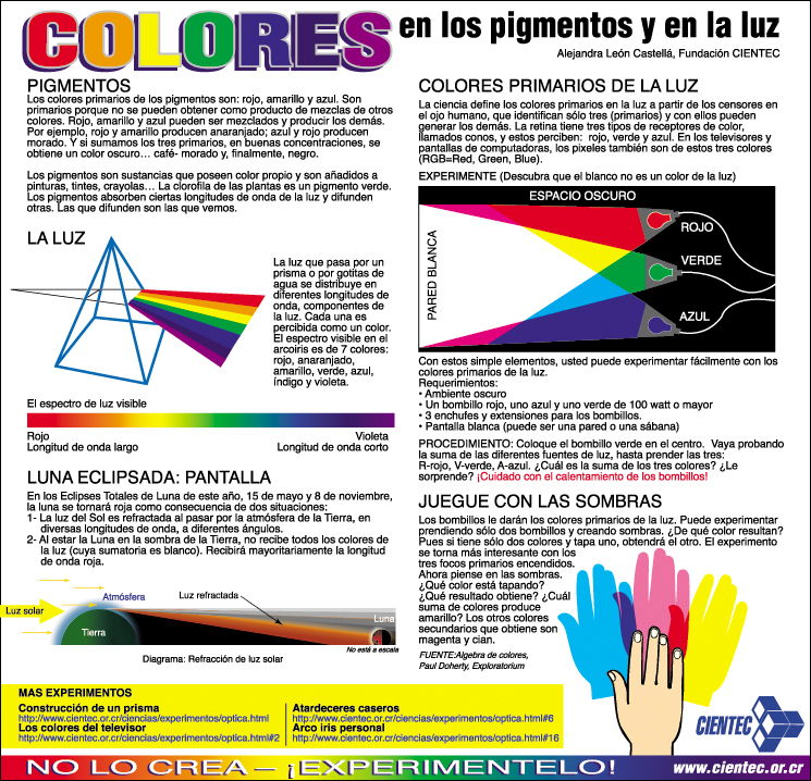 Descubra que el blanco no es un color de la luz. Con estos simple elementos, usted puede experimentar fácilmente con los colores primarios de la luz.