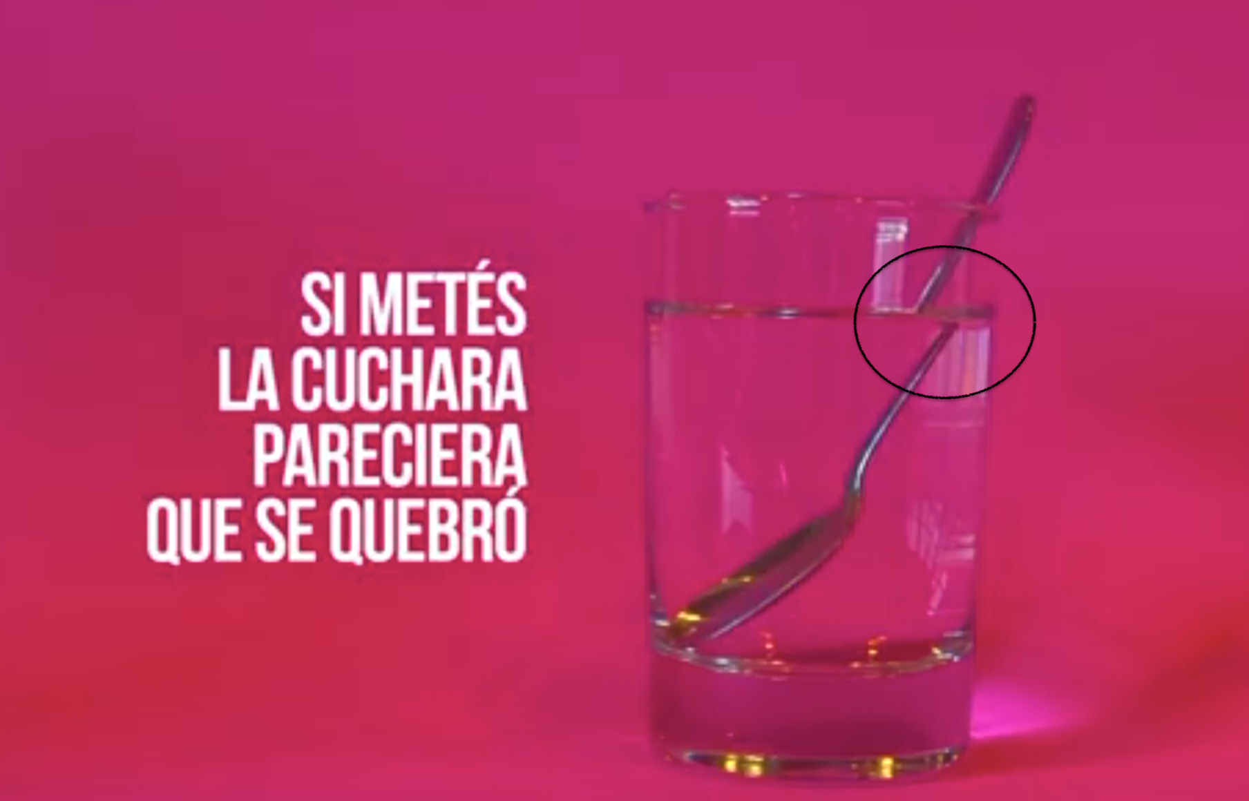 Cuando la luz viaja en diferentes medios, cambia de velocidad y de dirección. Pero también el vaso, con su forma, tiene un efecto de lente.