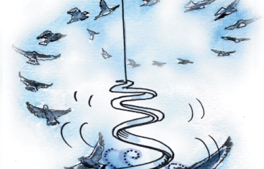 Un molinito de papel, suspendido sobre una tasa de agua caliente, se mueve debido al aire caliente que asciende. Sobre estas avenidas de...