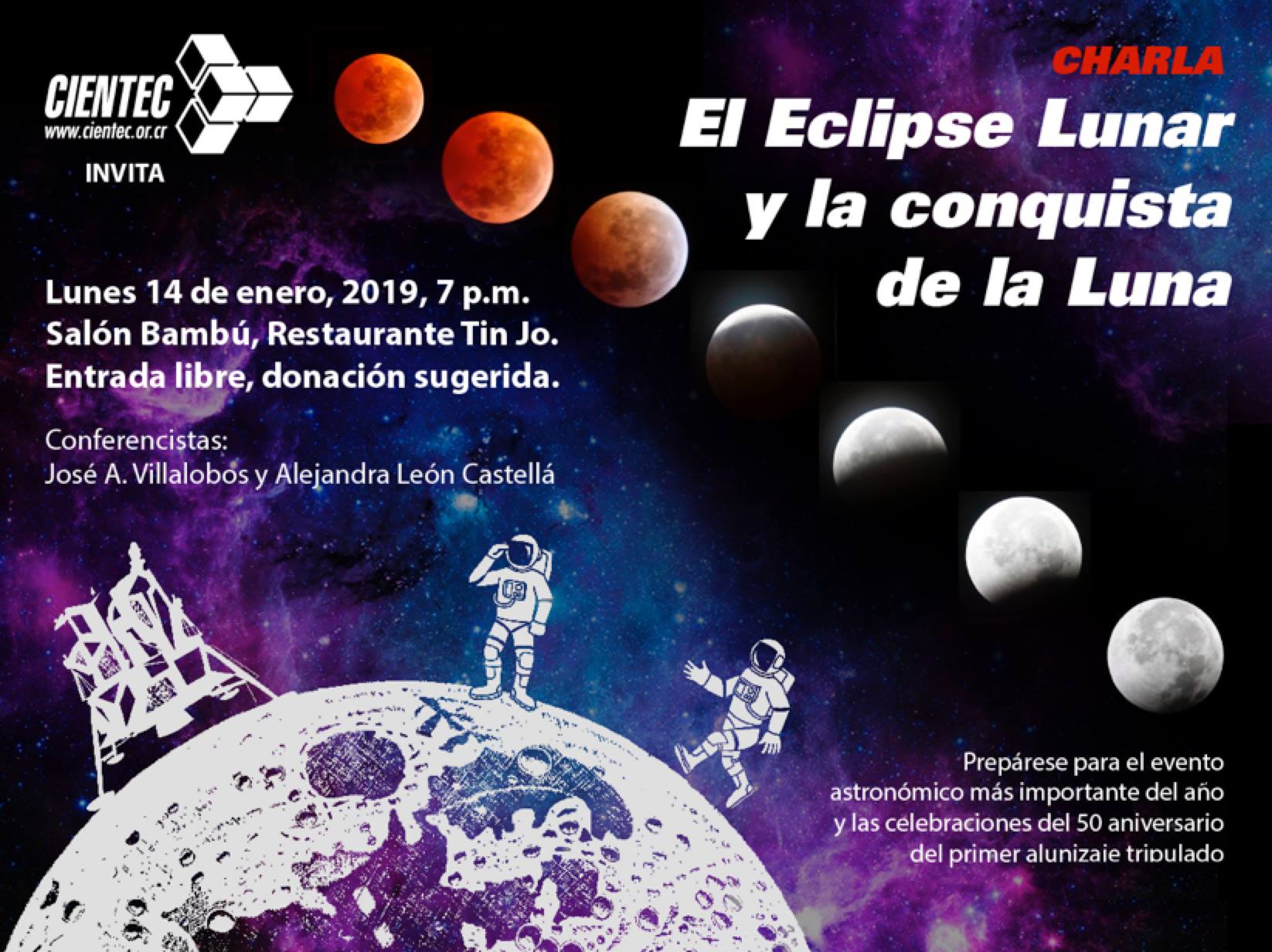 En respuesta a las solicitudes de información preparatoria, CIENTEC organiza una charla el lunes 14 de enero 2019 en sobre el Eclipse total de Luna del 20 de enero próximo.